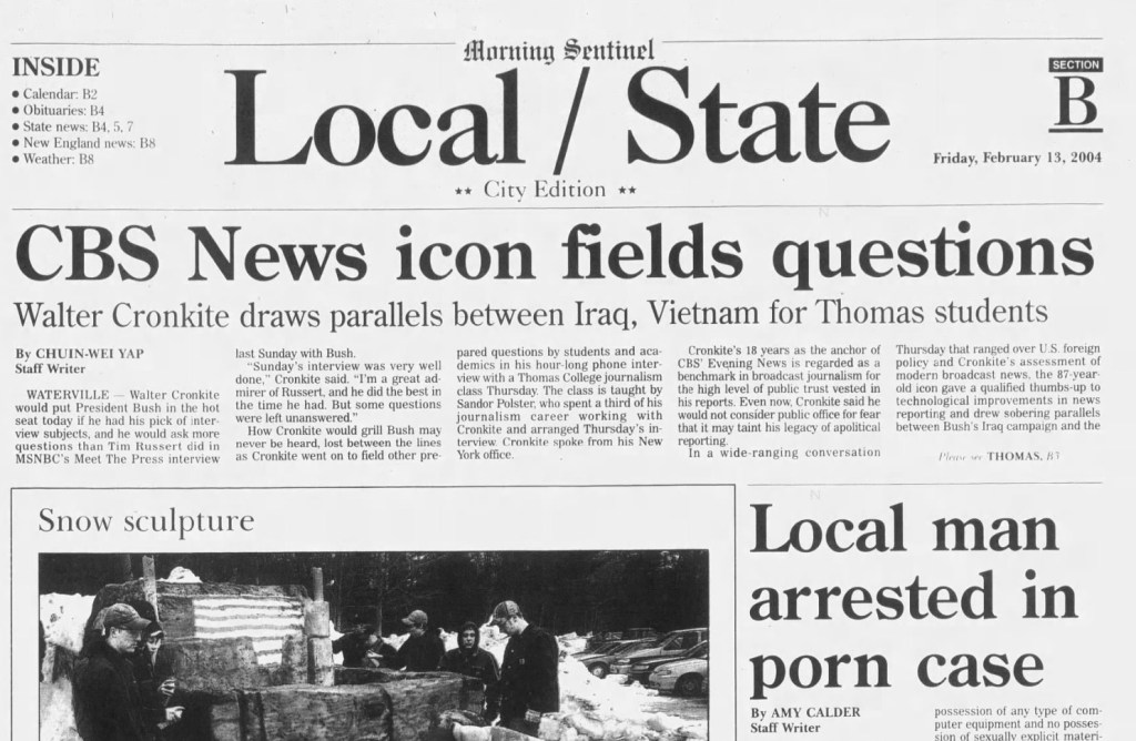 Source : m.facebook.comFeb. 13, 2004: Former CBS News anchor Walter Cronkite fields